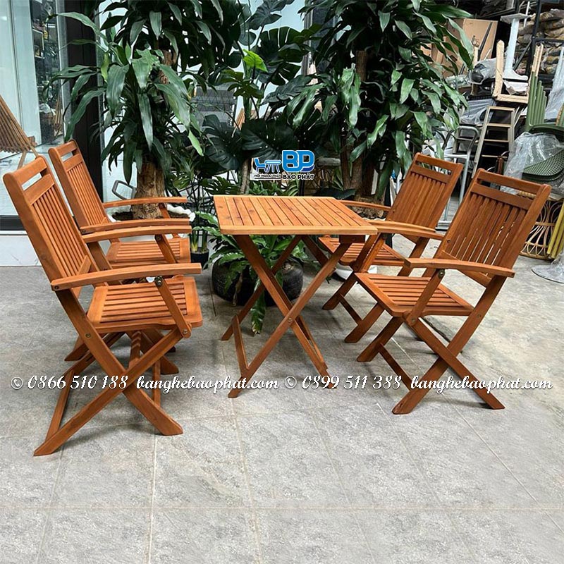 Bộ bàn ghế cafe gỗ xếp có tay tựa của Bảo Phát được thiết kế với nhiều ưu điểm vượt trội, phù hợp với nhu cầu sử dụng đa dạng của khách hàng như: