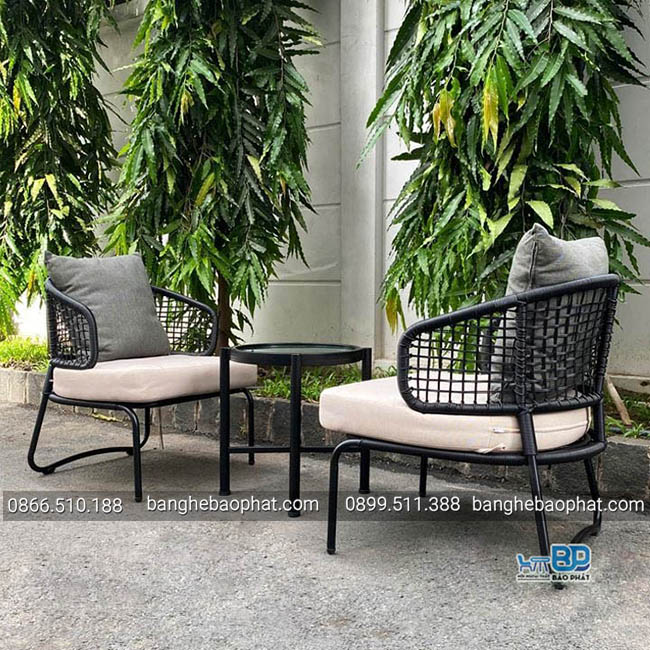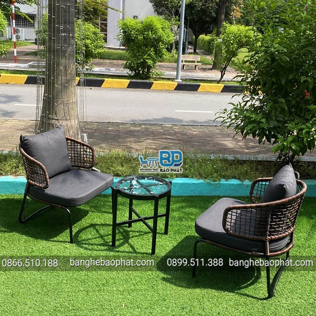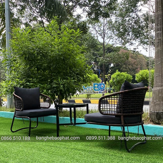 Khung sắt, sơn tĩnh điện, đan sợi nhựa giả mây kháng tia UV.