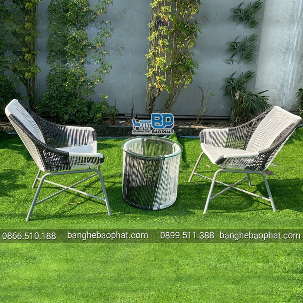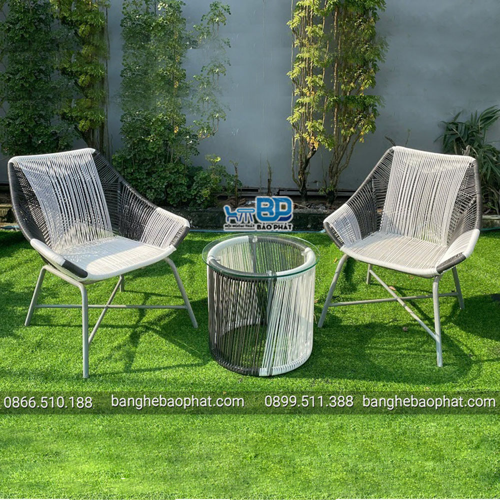 Khung sắt, sơn tĩnh điện, đan sợi nhựa giả mây kháng tia UV.