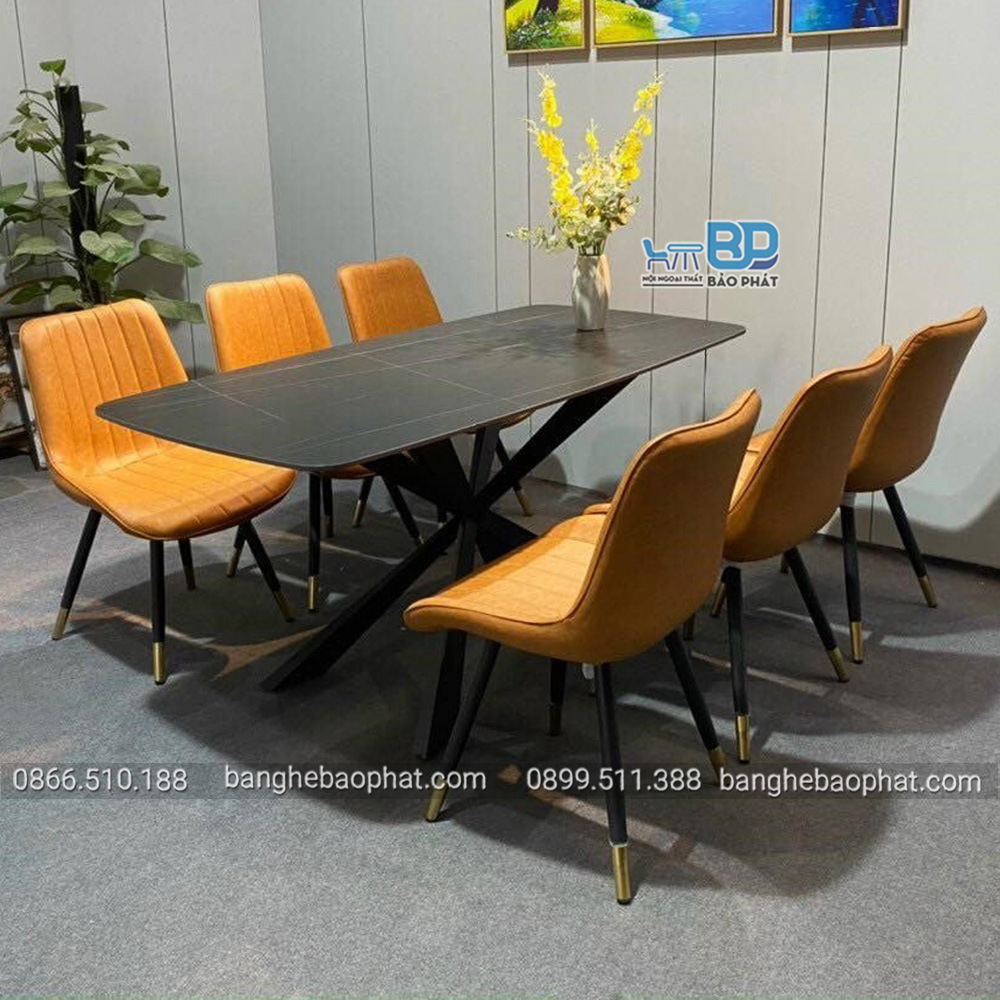- Bàn: chân sắt sơn tĩnh điện, mặt bàn đá Ceramic.