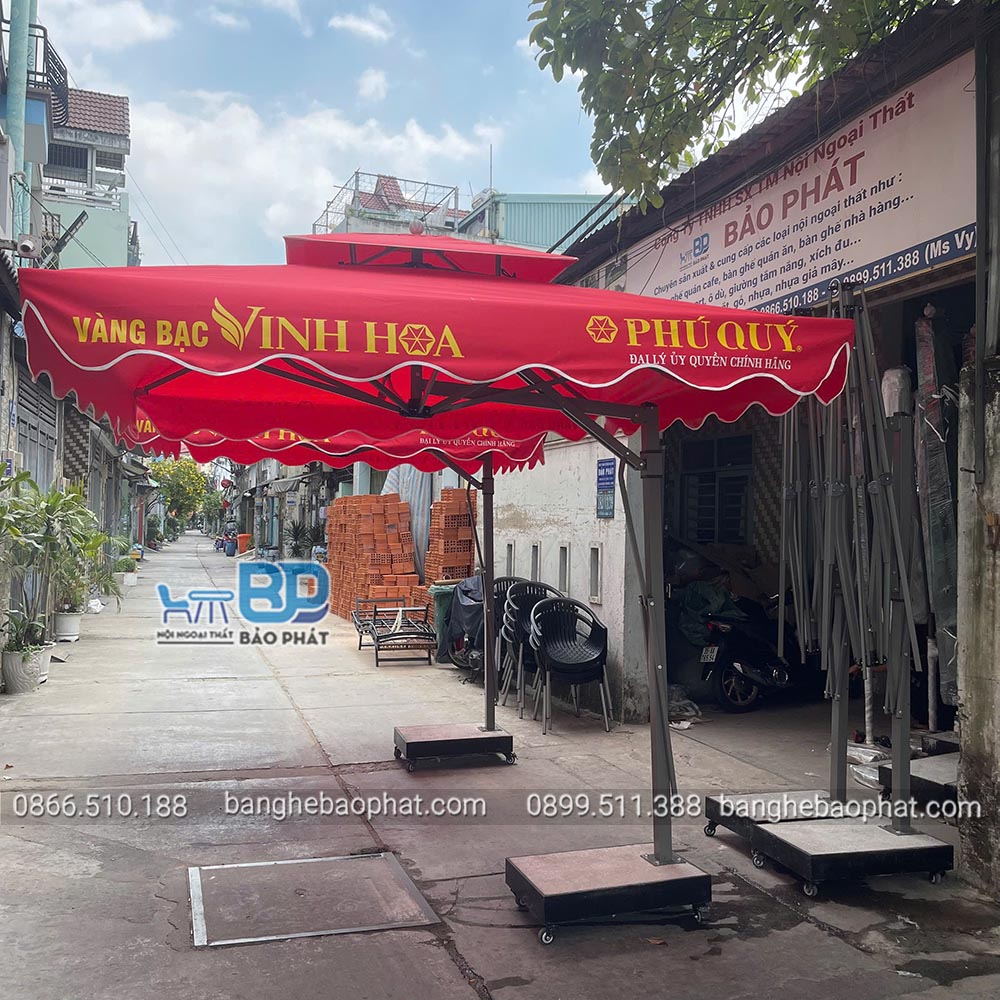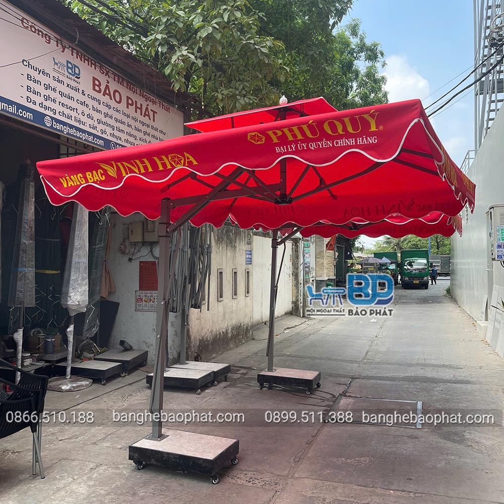 Dù lệch tâm vuông 2m5 màu đỏ in logo
