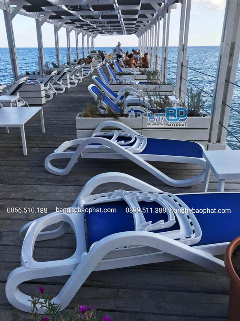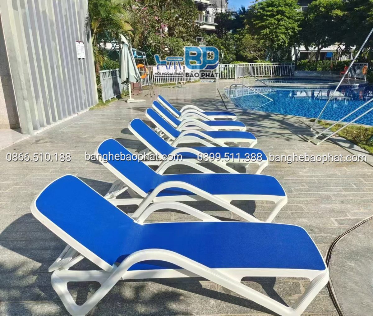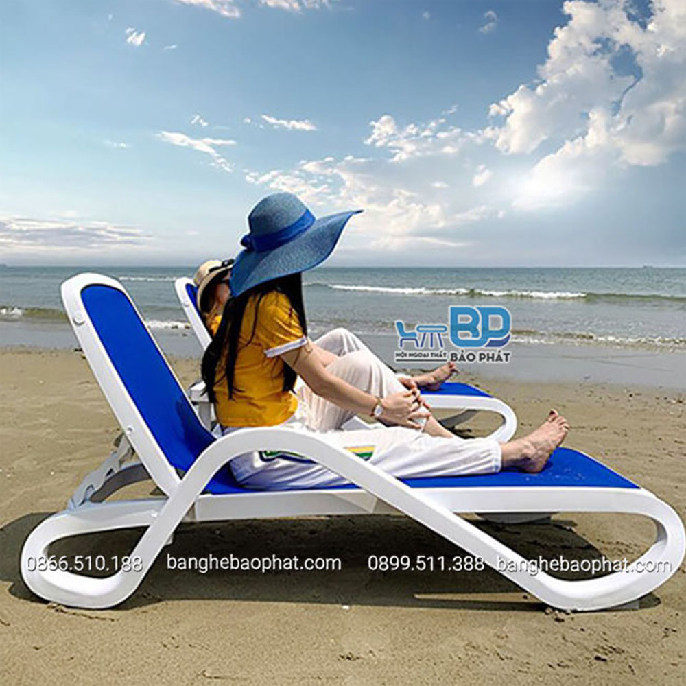 Ghế nằm bãi biển nhựa lưới textilene màu xanh GHBNBP004