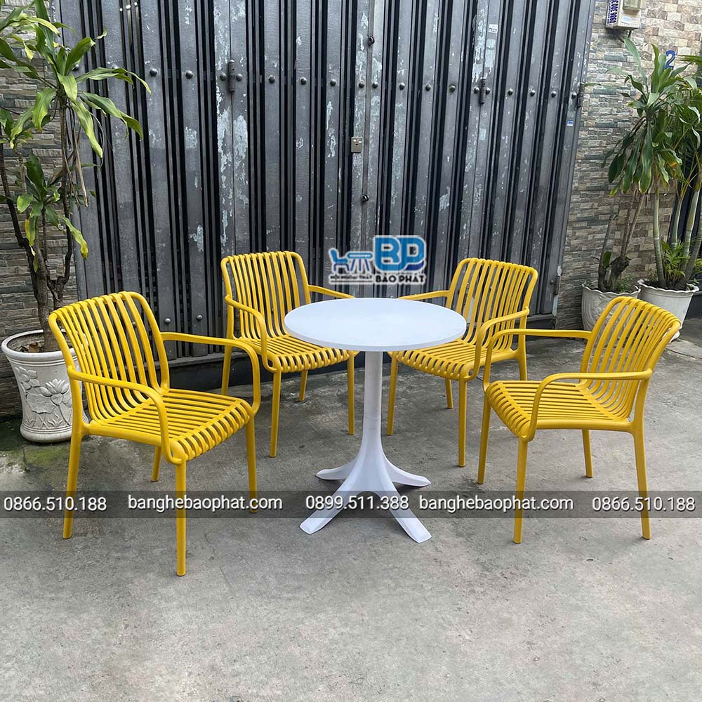 bàn ghế nhựa 3046 màu vàng bàn trắng